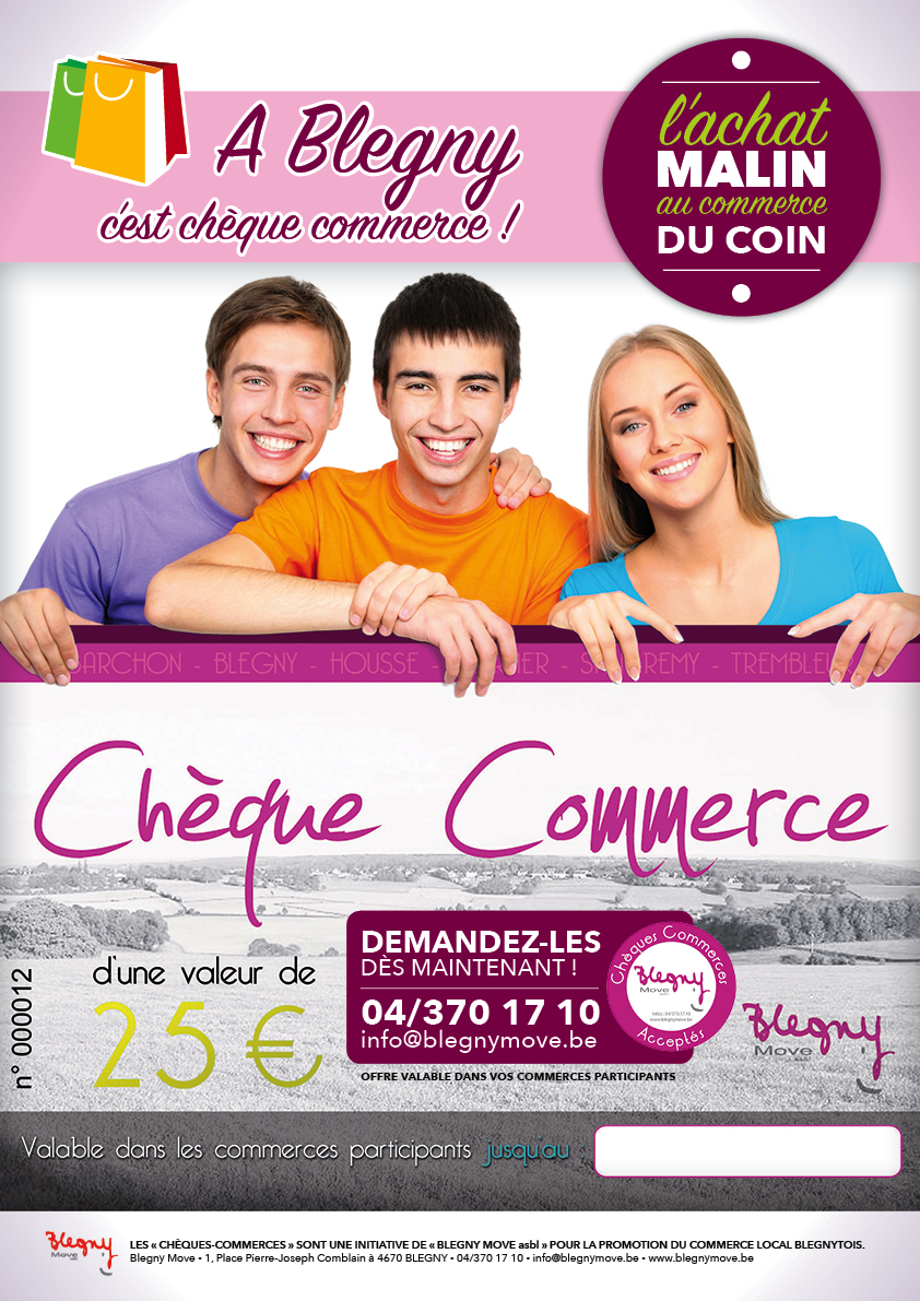 Vous êtes commerçant dans la commune de Blegny et vous souhaitez à votre tour faire partie du système des chèques-commerces, vous pouvez télécharger la convention relative à celui-ci. Si vous êtes intéressé, vous pouvez nous la renvoyer complétée et signée.